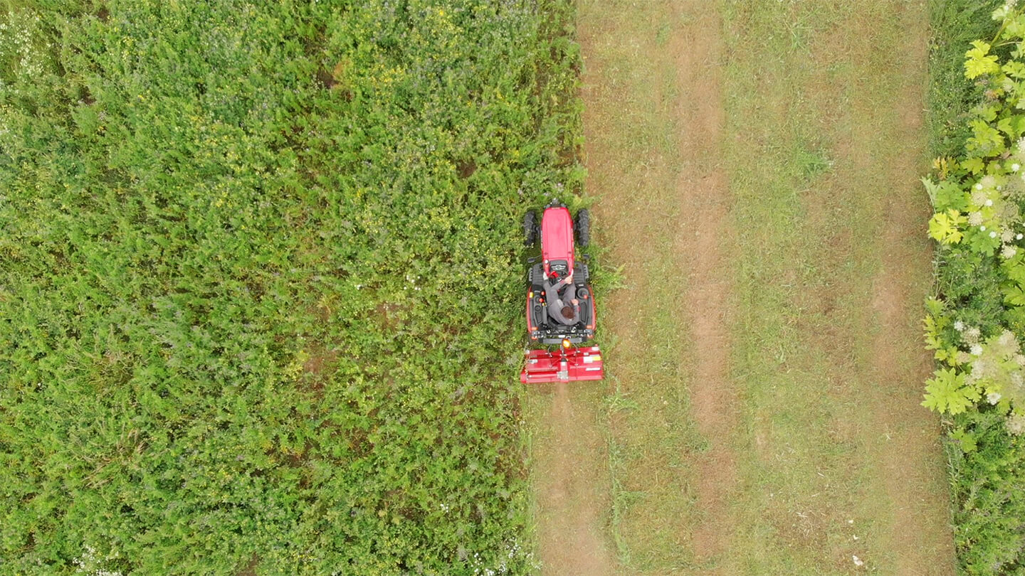 Ротор мульчера вращается со скоростью 2109 об/мин. При такой скорости вращения молотковые ножи измельчают даже небольшие кустарники, виноградную лозу и ветки. Чтобы получить ровный фон обрабатываемой поверхности и подготовить почву к последующей обработке, достаточно одного прохода.